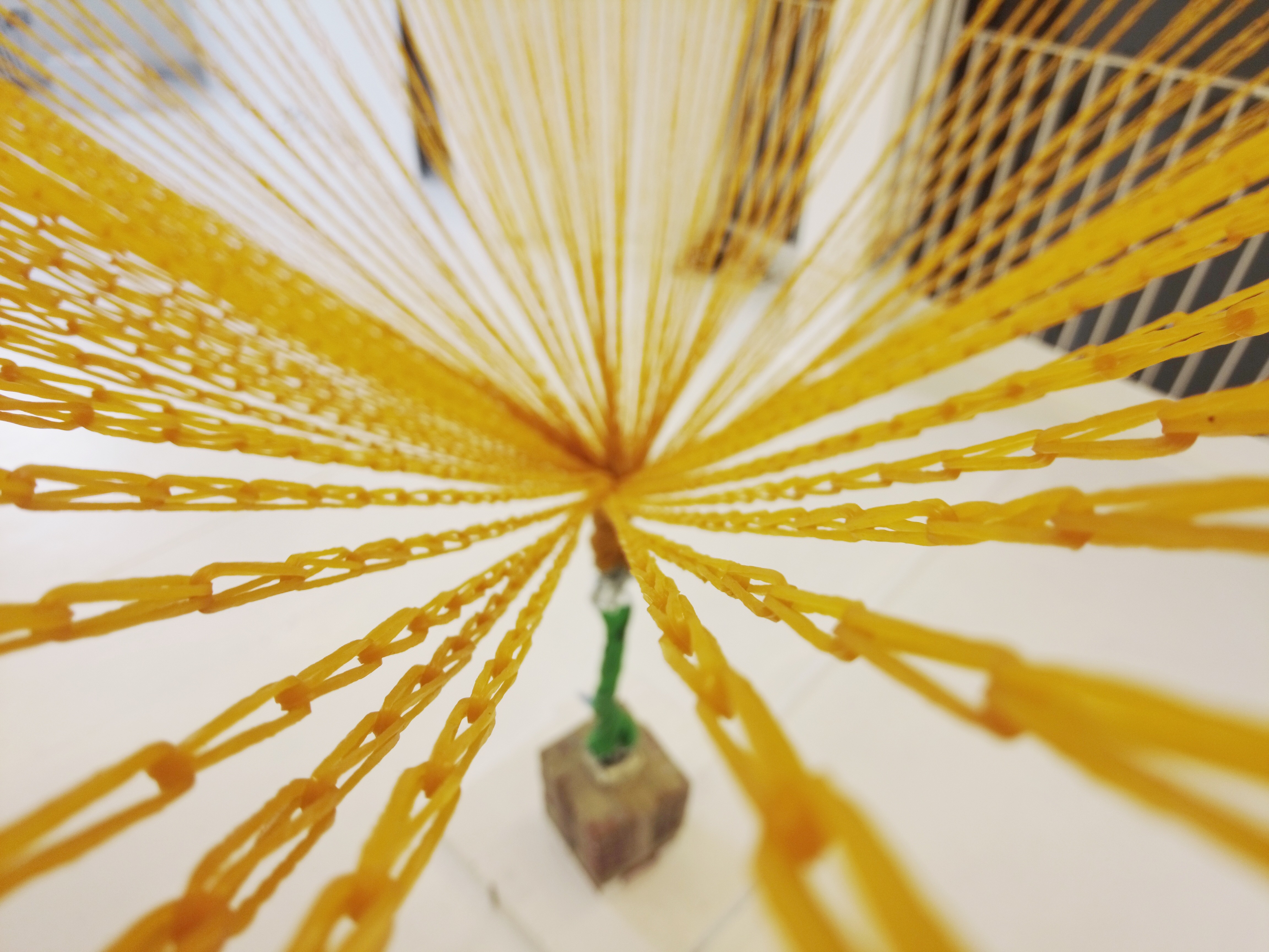 作品聚焦于个体在被结构化的外部力量约束时所产生的张力。这种张力通过橡 皮筋的变形得以可视化。本作品与我之前的作品《一秒钟的胜利》相呼应,后者通过数千根橡皮筋的协 调行动,探索了集体力量与面对递归性时间所做出的西西弗斯式努力。